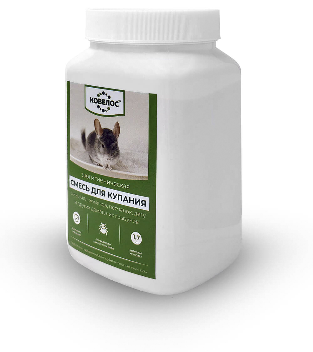Песок для купания шиншилл, хомяков, песчанок, дегу и других домашних грызунов ТМ Ковелос имеет мелкие частички смеси, похожи на пыль, они легко проникают в шерсть и качественно впитывают влагу не травмируя кожу и волоски питомца. За счет легкой структуры он свободно высыпается из шерсти животного, оставляя ее чистой и здоровой.